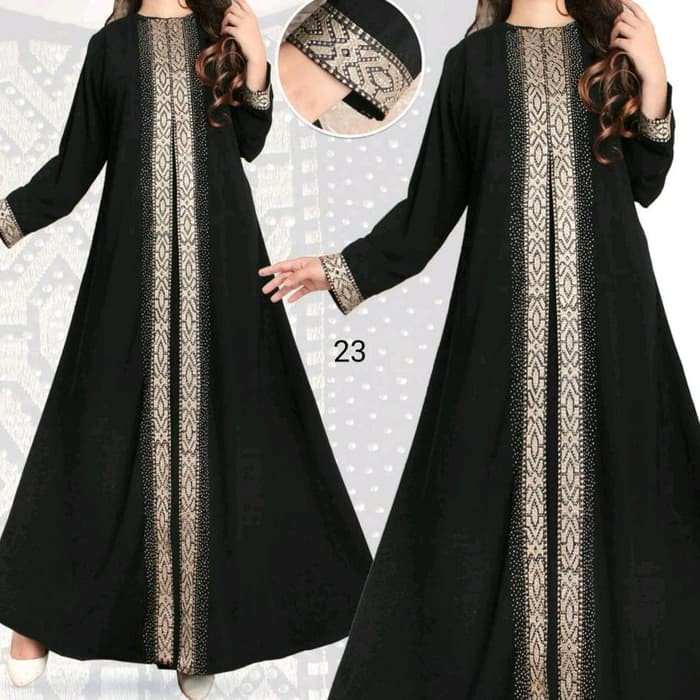 Original Rn Gamis Arabian 4 Bordir Fayet Syari Hitam Modis Gaun